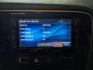 Если вы забыли код безопасности, вы можете принудительно снять его, нажав кнопку Unlock в разделе Hands Free Module Сервисного меню.