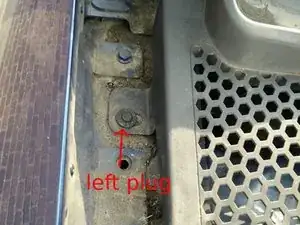 Все ещё со левой стороны автомобиля поднимите пластиковую решётку снова — вы увидите наш сливной клапан для воды.