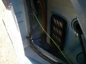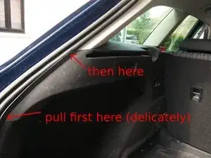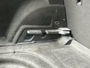 Чтобы снять эту пластину, нажмите на левую (большую) сторону внутрь (в сторону автомобиля). Правая (малая) сторона отщёлкнется, и вы сможете вынуть всю деталь, сначала вытащив правую (малую) сторону.