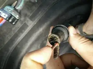 Когда чёрный наконечник окажется в руках, очистите его изнутри