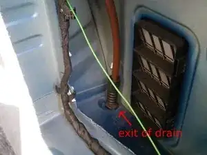 Найдите сливные отверстия люка, проверьте, нет ли грязи на входном отверстии. (т.е. вы должны видеть чистое отверстие, как на фото)