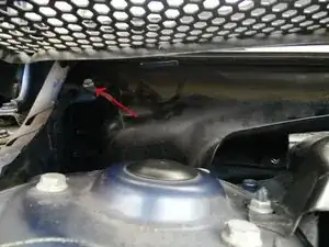 Слева вы увидите два болта (10 мм), крепящие защитную пластину. Она предотвращает попадание воды в впуск воздуха.