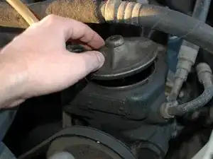Резервуар для жидкости в рулевом управлении расположен внутри насоса, который находится с правой стороны двигателя, если смотреть на него спереди. В США это сторона водителя. К нему подключены следующие компоненты: