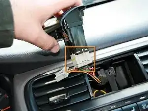 Теперь осторожно потяните нижнюю часть центрального консоли на себя. Не вырывайте её, так как есть еще два разъема, удерживающих её на месте.