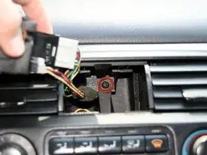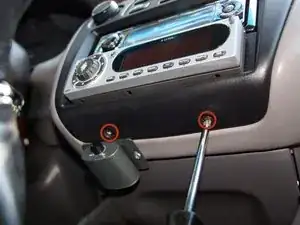 Используйте отвертку Phillips #2, чтобы удалить два винта, удерживающие центральную часть панели приборов на месте.