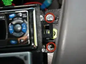 Снимите четыре винта (по два с каждой стороны), удерживающие рамку двойного DIN, используя JIS отвертку #2 или торцевой ключ 8 мм.