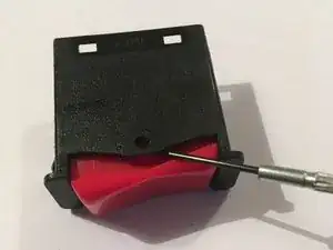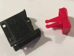 С помощью тонкой отвертки нужно приподнять между красным валом и черным пластиковым элементом. ВНИМАНИЕ! Не вставляйте отвертку слишком глубоко, так как при рывке вы можете сломать ножки красного переключателя, который активирует механизм.