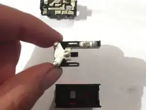 Теперь у вас в руках деталь с контактами для очистки, будьте осторожны, внутри корпуса находятся 3 детали (1 пластиковая и две металлические) и две маленькие пружины, которые могут выскочить.