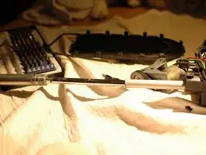 Теперь можно снять корпус шестерен и кожух троса. Лучше всего вращать корпус вверх и в направлении отверстия вала антенны, затем под углом поднимать и вынимать его из корпуса мотора.