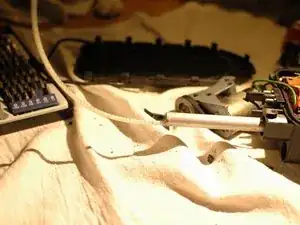 Вытяните ребристый пластиковый трос, соединённый с валом антенны, из корпуса мотора.