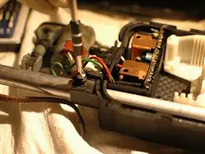 Продолжите разборку, выкрутив два винта с крестовой головкой, удерживающие электродвигатель.