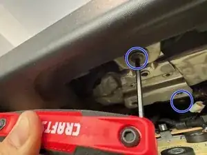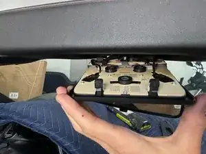 После того, как вы вытащили центральные элементы управления, необходимо удалить два черных винта Torx 15, чтобы обивка отсоединилась.