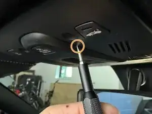 Используйте биту Phillips #2 для удаления 2 винтов с обеих солнцезащитных штор водителя и пассажира. Будьте осторожны, черное покрытие может слезть с головок винтов, если применить слишком большую силу.