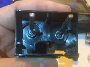 После снятия платы мы наконец получаем доступ к креплениям, используемым для фиксации потенциометров к центру модуля.