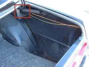 Посмотрите выше за пружину багажника, и вы увидите винты, которыми актуатор крепится к панели внутри багажника.