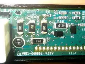 Найдите 5 черных компонентов на печатной плате. Они обозначены 270, 510 и 3 в 181. Эти элементы нужно перепаять.