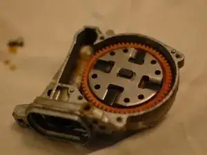 При разделении корпусов могут отвалиться несколько деталей, включая показанную прокладку, а также металлический подшипник и пластиковый фиксатор, которые надеваются на гладкий наконечник червячной шестерни.