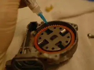 После высыхания смажьте большую пластиковую шестерню и червячную шестерню мотора синтетической смазкой, например силиконовой SuperLube. Избегайте нефтяных смазок, таких как вазелин или молибденовая смазка, поскольку они могут повредить пластик и резиновые детали.