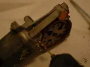 У этого типа мотора электрический блок заключён в металлический корпус. Его можно почистить, сначала вынув пластиковые заглушки из двух отверстий внизу мотора.