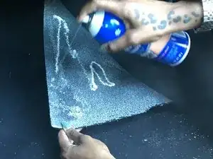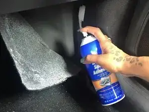 Нанесите щедрый слой аэрозольного клея на поверхность пола.