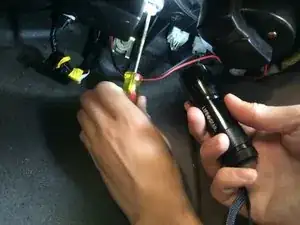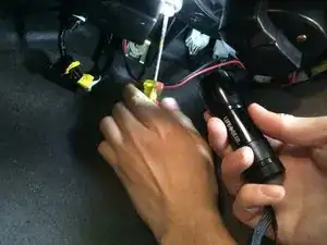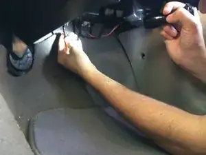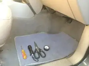 Для удобного доступа к проводам отодвиньте сиденье назад и разместите инструменты на полу автомобиля.