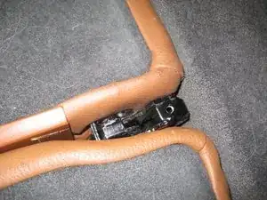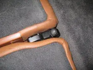 Снимите скобу. Поворачивайте скобу в сторону передней части автомобиля — не беспокойтесь, если не получится полностью её извлечь. Вы сможете снять скобу после снятия левой спинки сиденья. Главное — обеспечить возможность освобождения левой спинки.
