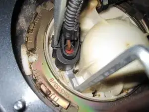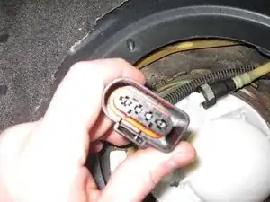 Отсоедините электрический разъём топливного насоса.