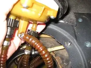 Отсоедините топливные трубки от узла топливного фильтра.