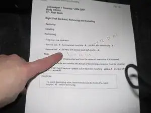 Это похоже на шаг по снятию — нужно наклонить спинку примерно под углом 45° чтобы она встала на штифт в боковой части кузова.