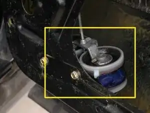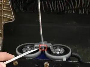 Используйте отвертку, чтобы снять стопорное кольцо, удерживающее тягу на металлической перекладине привода. Аккуратно сохраните стопорное кольцо в безопасном месте.