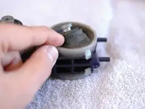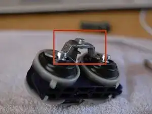 Переустановите металлический соединитель на металлическую часть каждой диафрагмы. Подход под углом, как показано, может помочь.