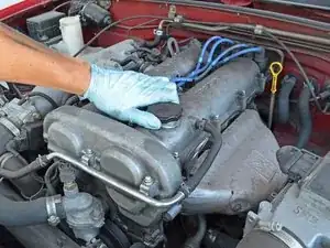 Снимите крышку заливной горловины масла спереди двигателя, повернув её против часовой стрелки, затем поднимите вверх.