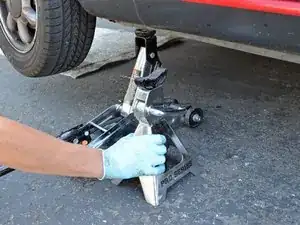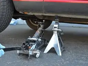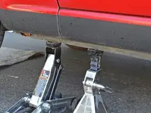 Поднимите угол автомобиля так, чтобы вам было удобно работать под ним.