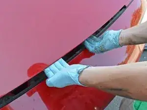 Подняв капот, вставьте подпорку капота в отверстие с отметкой «rod» на внутренней стороне капота.