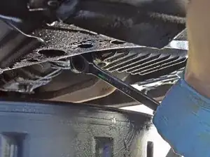 Используйте рожковый ключ на 19 мм или трещотку с головкой, чтобы ослабить сливной болт.