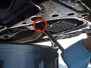 Позвольте маслу вытекать из поддона до тех пор, пока поток не замедлится до небольших капель.