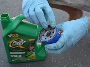 Обмакните палец в контейнер с новым маслом и нанесите тонкий слой масла на уплотнительное кольцо нового фильтра.