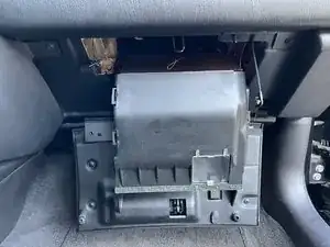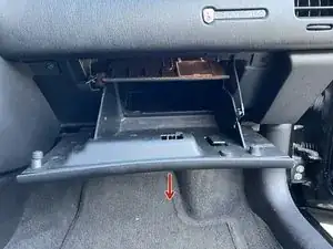 Чтобы получить доступ к петлям дверцы бардачка, сначала необходимо снять облицовку в проёме для ног с пассажирской стороны.