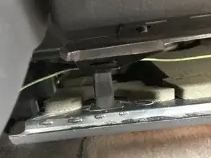 Нажатие на защёлку вниз позволит вытянуть её из дверцы и освободить трос.