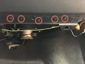 Петля крепится к панели приборов пятью болтами с головкой на 7 мм — открутите их.