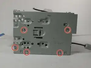Уберите три винта с переменной головкой из стали размером 1/64 x 3/16", указанные на фотографии, с помощью отвертки Phillips #0.