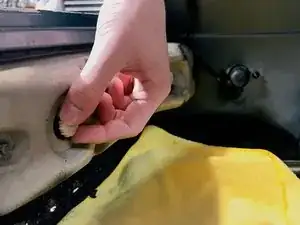 Снимите лампу, слегка надавив на неё в корпус и затем выкрутив и вытащив её.