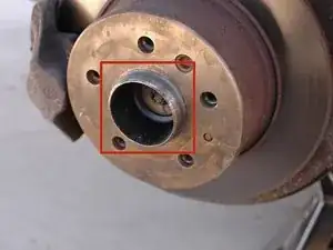 Обратите внимание на выступ ступицы, который здесь виден. Это позволит вам положить колесо на ступицу, чтобы не держать его вес, устанавливая колесные болты обратно во время повторной установки.