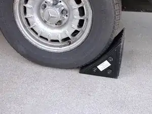 Противооткатный упор препятствует откатыванию автомобиля. Разместите упоры в направлении, в котором, по вашему мнению, автомобиль может покатиться, например по направлению уклона рабочей площадки. В случае сомнений установите упоры с обеих сторон колеса.