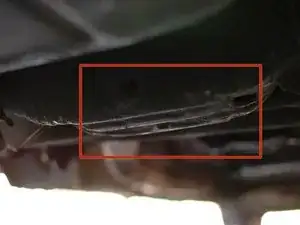 Спереди автомобиля найдите усиленную область коробчатой секции несущего кузова, выделенную на изображении. Это упрочнённая часть, предназначенная для опоры подставки домкрата.