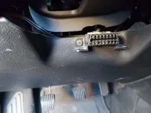 Фото 3: разъём OBD II на Chevrolet AVEO 2002–2011. ВАЖНО: изначально он находился не там, где показано на фото — был перенесён в более доступное место под рулевой колонкой.