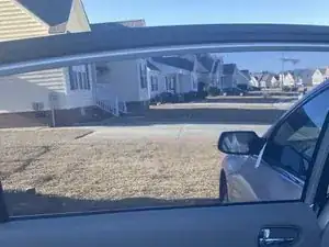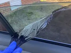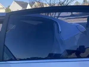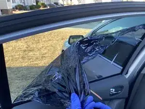 Опустите стекло примерно на одну четверть, чтобы начать снимать тонировку сверху.