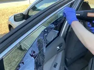 ПРОЧИТАЙТЕ: Для удаления тонировки вам понадобятся строительный фен и острый лезвие. Прочитайте и следуйте всем инструкциям по использованию инструментов. Пожалуйста, действуйте здраво при работе с этими опасными инструментами, не порежьте и не обожгитесь. Также убедитесь, что вы работаете в хорошо проветриваемом помещении на случай выделения паров.