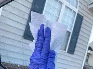 Когда вы снимете всю пленку, распылите на стекло средство для мытья стекол и протрите стекло тряпкой или бумажным полотенцем.
