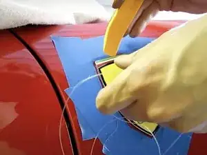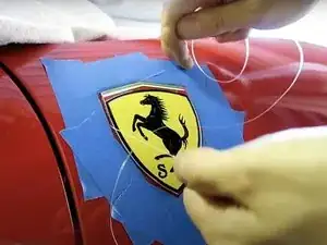 Обклейте значок вашей Ferrari маскирующей лентой, как показано на рисунке.